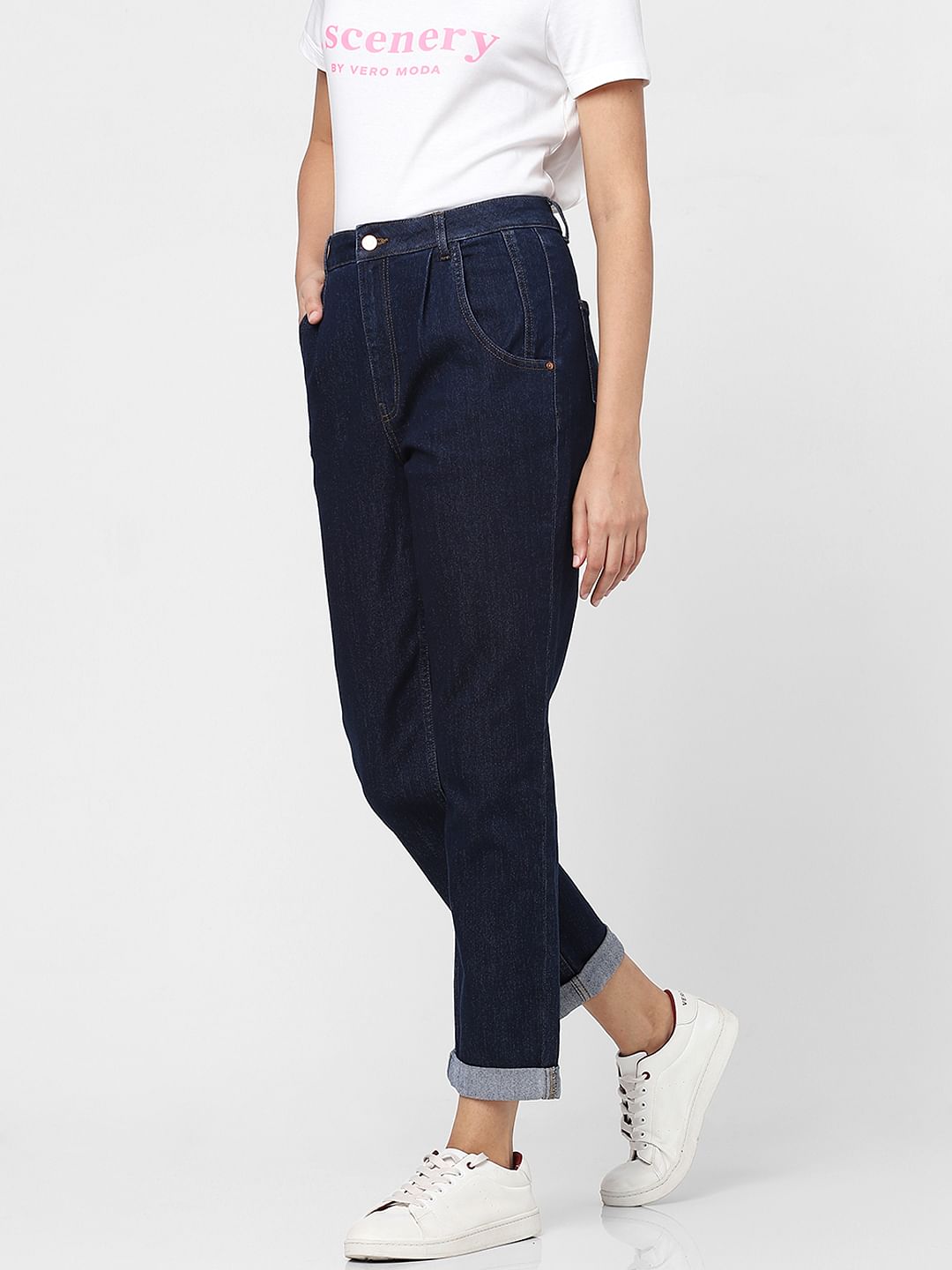 Blue High Rise Pleated Jade Straight Fit Jeans