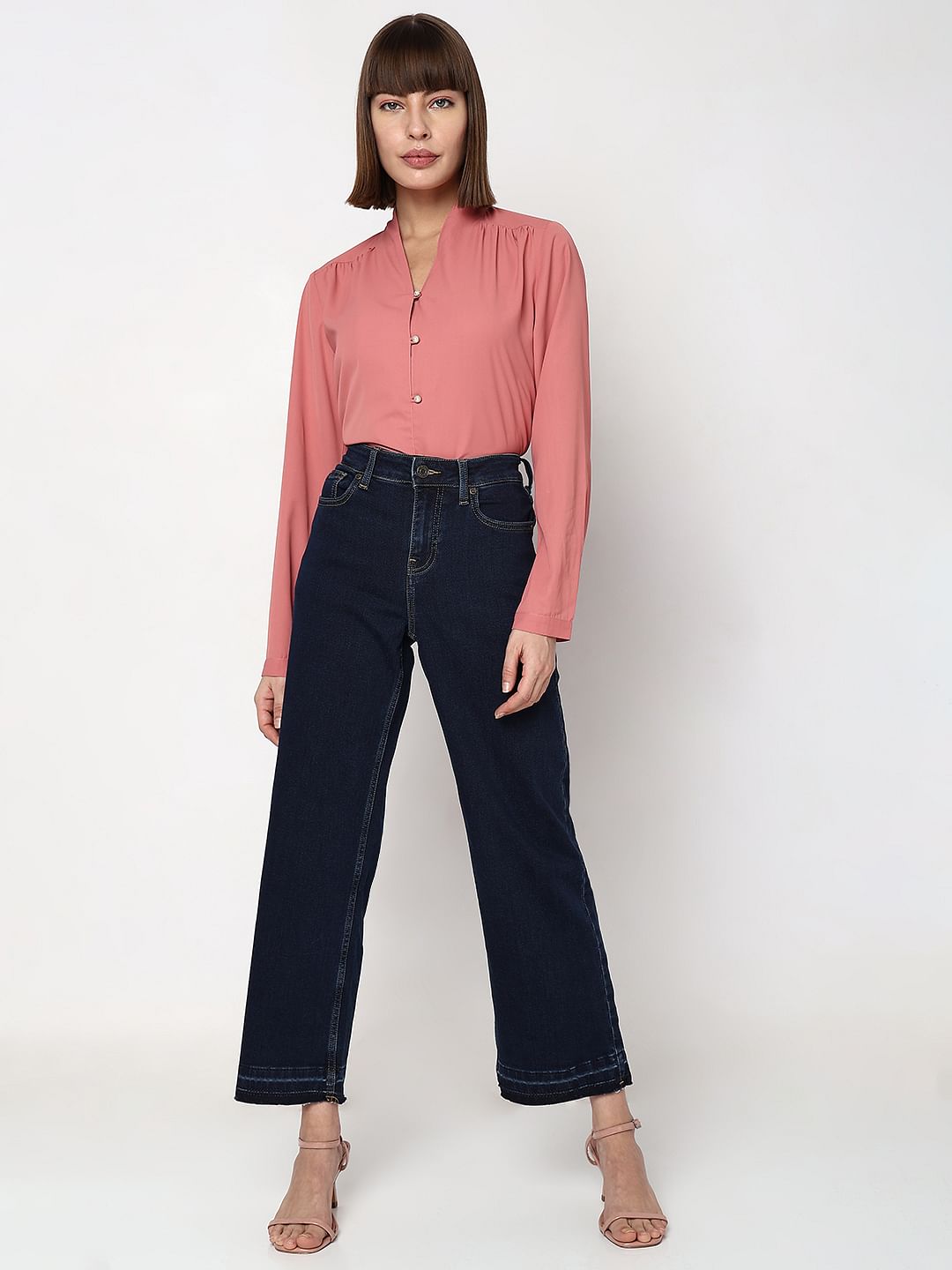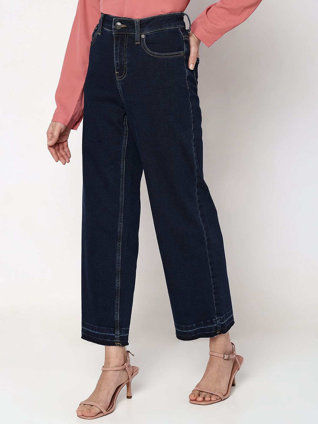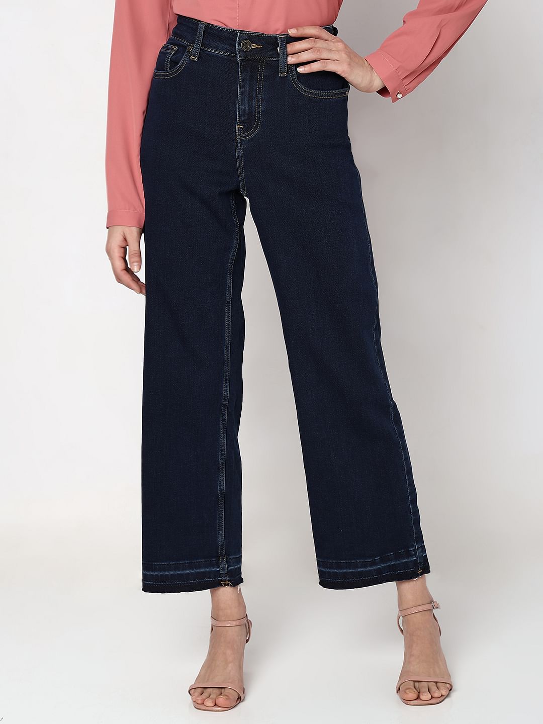 Dark Blue High Rise Jade Straight Fit Jeans