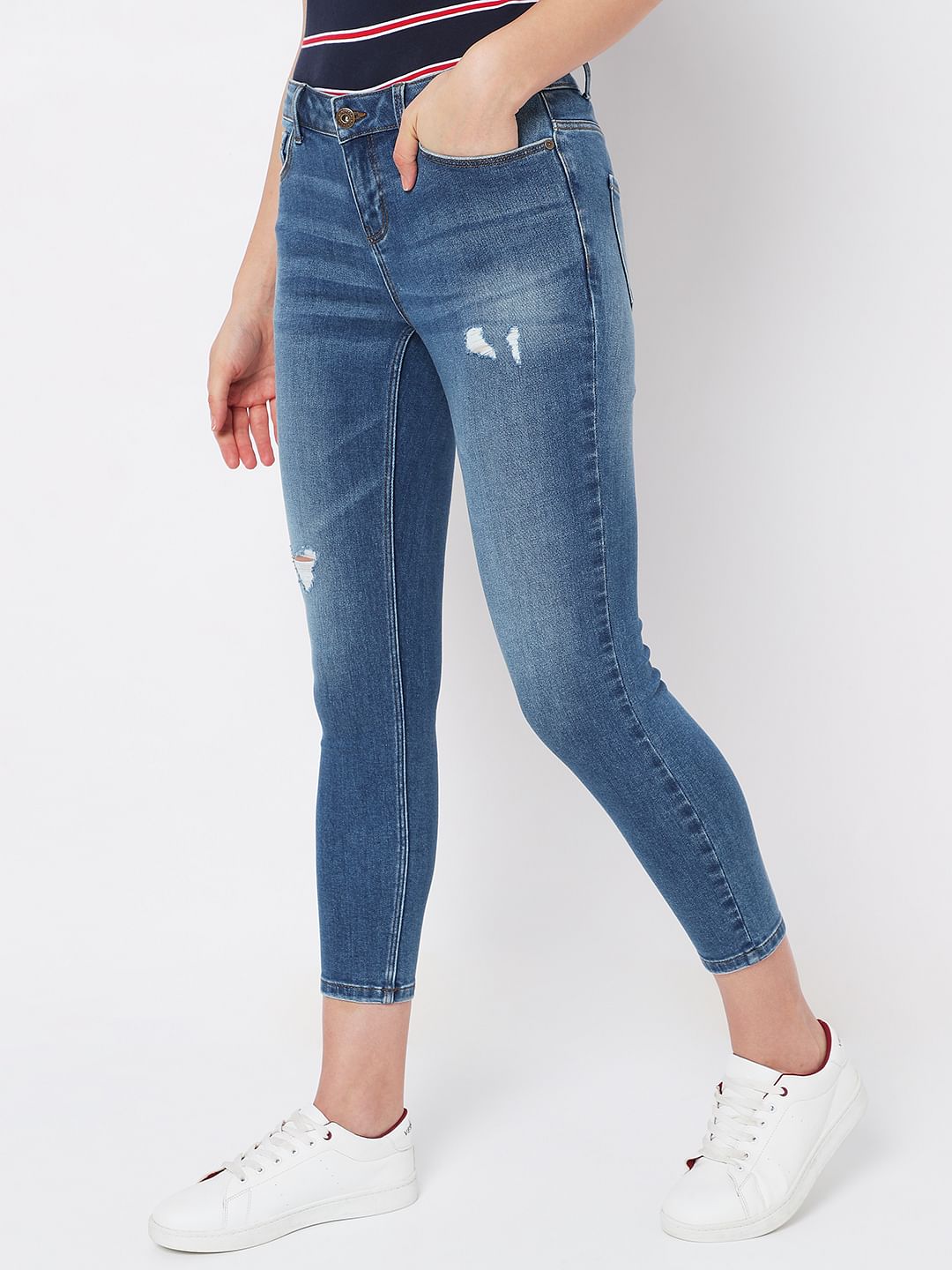 Light Blue Mid Rise Distressed Wendy Skinny Jeans